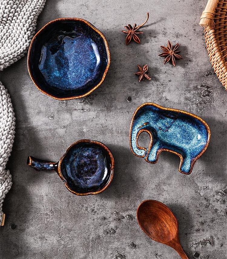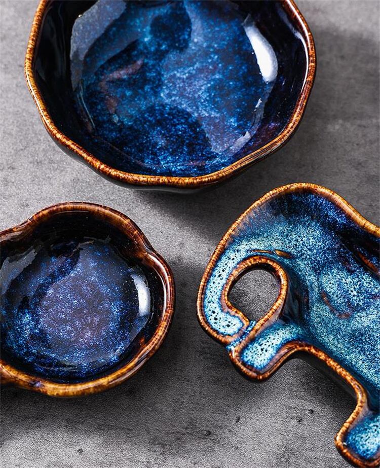 星空青 セラミック 調味料 鍋ディッピングソーサー 家庭用 ソース 小皿 醤油皿 酢皿