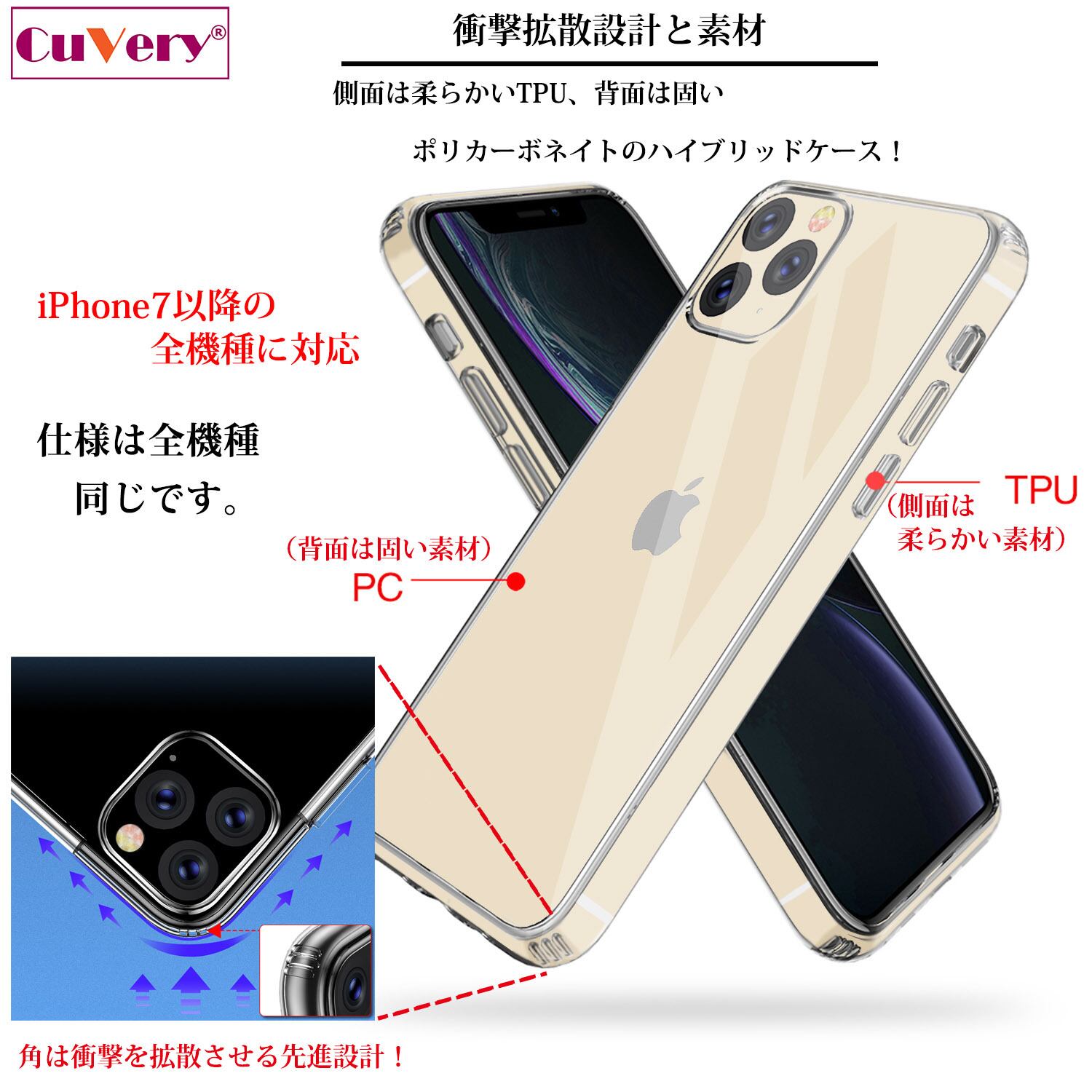 ★ケース本体:素材・成分:TPU、ソフト素材(側面)とポリカーボネイト、ハード素材(背面)を使用した最新のハイブリッドケース