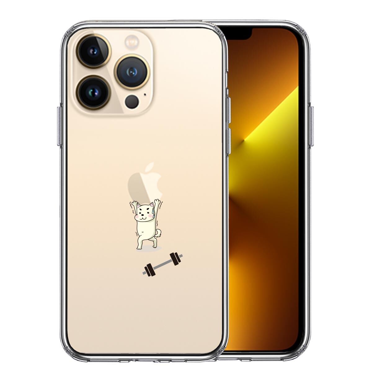 iPhone13 Pro 側面ソフト 背面ハード ハイブリッド クリア ケース わんこ 筋トレ ダンベル