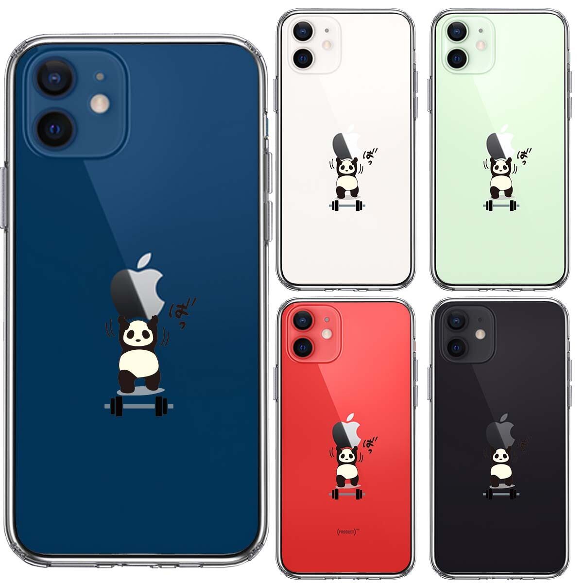 iPhone12mini 側面ソフト 背面ハード ハイブリッド クリア ケース パンダ 筋トレ ダンベル